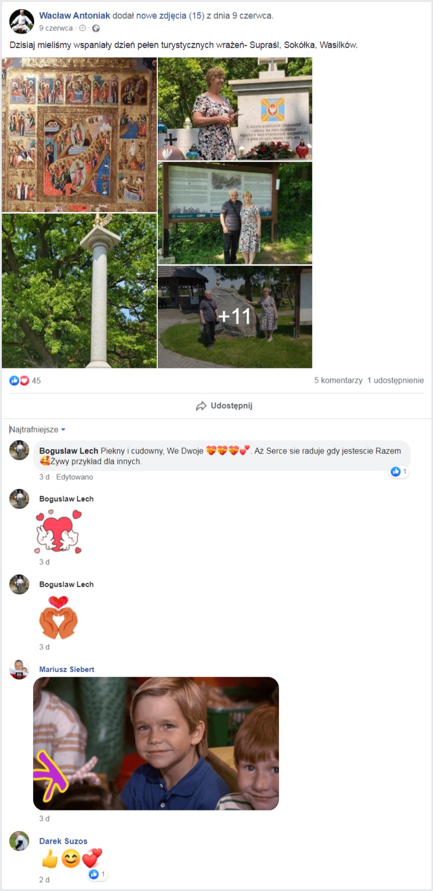 Relacja 1 Facebook Wacław Antoniak (stan na dzień 14.06.2022), KLIKNIJ, by przejść na Facebook: