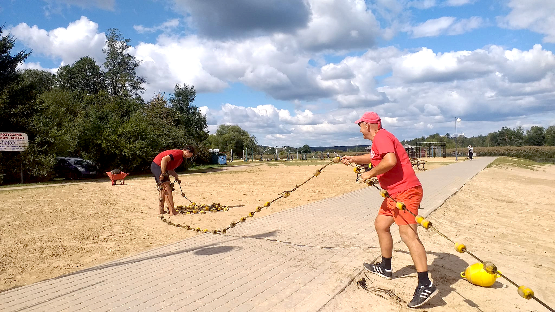 Warto podkreślić incydenty z porządkiem na plaży. Wszelakie patyczki, słomki, kapsle to wróg udanego plażowania! Dodatkowo Plaża Miejska w Supraślu nie ma naturalnie występującego piasku na wybrzeżu, więc wymaga ona codziennej pielęgnacji z naszej strony w postaci grabienia i równania. Budowanie piaszczystych zamków i kanionów jest świetne, ale gdy kończymy zabawę należy wyrównać za sobą teren, gdyż duże dziury potrafią być nawet zagrożeniem dla kostek. Tutaj pozdrawiamy pana, który w tym roku postanowił wybudować pułapkę na pół metra w dół i przykryć to patyczkami z piaskiem. Na szczęście po zwróceniu uwagi, została ona zakopana. Właśnie stąd na wielu kąpieliskach obowiązuje zakaz tego typu zabawy (u nas tego nie ma, bo ufamy, że wypoczywający będą postępować racjonalnie). Jako ratownicy prócz dyżuru od 10 do 18 poświęcaliśmy dodatkowo średnio 4 godziny dziennie na porządkowanie całego obszaru, a wcale nie było to proste, gdy z plaży w słonecznym dniu potrafiło korzystać jednocześnie nawet kilkaset osób. Pamiętajmy, że nawet jeślibyśmy mieli dostępnych do pracy dziesiątki osób, to nadal będzie to za mało w przypadku, gdy wszyscy ignorowaliby panujące zasady czystości.
