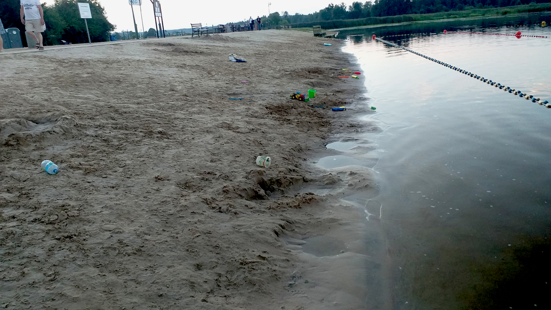 Godziny poranne przed rozłożeniem stanowiska ratowniczego i po pierwszych porządkach, widok na linię brzegową: